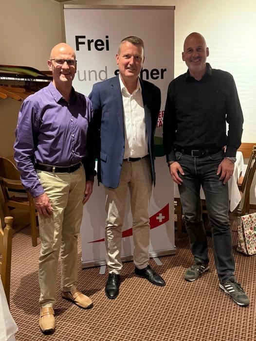 Von links nach rechts: Ortsparteipräsident Roger Wisler, Nationalrat Thomas Burgherr und Vizeammann Raphael Wyder